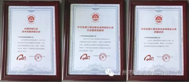 2016年5月20日,中華全國工商聯(lián)烘焙業(yè)公會乘著第二十屆中國烘焙展覽會開幕的東風,在廣交會威斯汀酒店的廣交會宴會廳舉辦“同行20年——全國工商聯(lián)烘焙業(yè)公會成立20周年慶典”活動。會上,我司很榮幸地獲得了包括“中國烘焙行業(yè)技術(shù)發(fā)展貢獻企業(yè)”、“中華全國工商聯(lián)烘焙業(yè)公會榮耀會員”、“中華全國工商聯(lián)烘焙業(yè)公會行業(yè)服務(wù)貢獻獎”在內(nèi)的三個重要獎項。此外,我司董事長謝擁葵先生也獲得公會頒發(fā)的“中華全國工商聯(lián)烘焙業(yè)公會執(zhí)行會長感謝狀”。