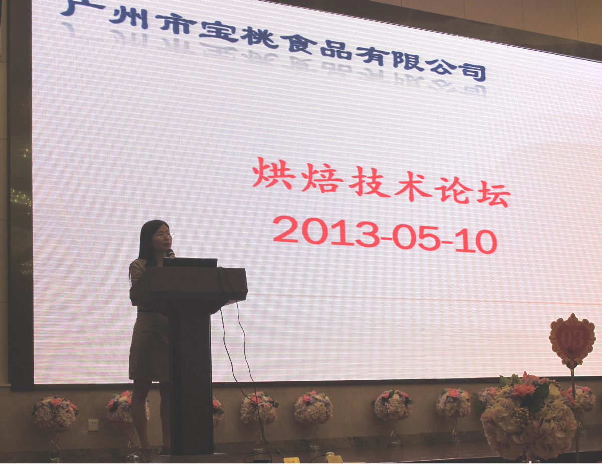下午5:05,寶桃公司烘焙技術(shù)論壇在稻香酒家(番禺奧園廣場店)宴會廳準時開始,寶桃公司總經(jīng)理謝瓊瑤擔任論壇的主持人,論壇上,謝總代表寶桃公司全體同仁們對各位嘉賓的支持和光臨,表達最熱烈的歡迎和由衷的感謝,并對烘焙業(yè)的興起與發(fā)展以及目前行業(yè)現(xiàn)狀做了全面而又詳細的解說與分析,為后面的嘉賓演講主題拋磚引玉。接著,寶桃公司技術(shù)顧問宋秀光先生以寶桃優(yōu)面膏為例,為大家詳細講解了乳化劑在烘焙產(chǎn)品中的應(yīng)用;南京師范大學金陵女子學院食品科學與工程系講師——劉琛女士與大家一起分享了她的課題:寶桃優(yōu)面膏對面團粉質(zhì)特性及面包品質(zhì)的作用研究。通過兩位老師的講解,大家更加清楚地了解寶桃優(yōu)面膏增加面團乳化效果、整體保氣性和彈性,使面包的組織結(jié)構(gòu)更細膩柔軟、改善面包的質(zhì)構(gòu)特性, 并在貯藏過程中能有效延緩面包老化等作用,并且都通過科學的驗證和精確的實驗數(shù)據(jù)來真實地體現(xiàn)寶桃優(yōu)面膏對于面團、面包、蛋糕等成品的實際效果,從而大大增強了大家對優(yōu)面膏的了解和功能的認可。