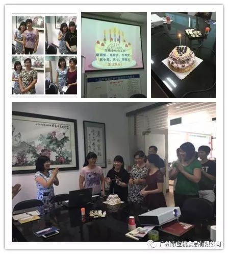 中場(chǎng)休息15分鐘后,熱鬧的員工生日會(huì)開始了,因?yàn)槠渲?位同事出差,我們大家為8月份生日的四位壽星獻(xiàn)唱生日歌。并由謝總代表大家獻(xiàn)上公司全體員工填寫的生日賀卡并送上祝福。隨后許愿、吹熄生日蠟燭,和大家一起分享研品部同事制作的蛋糕。